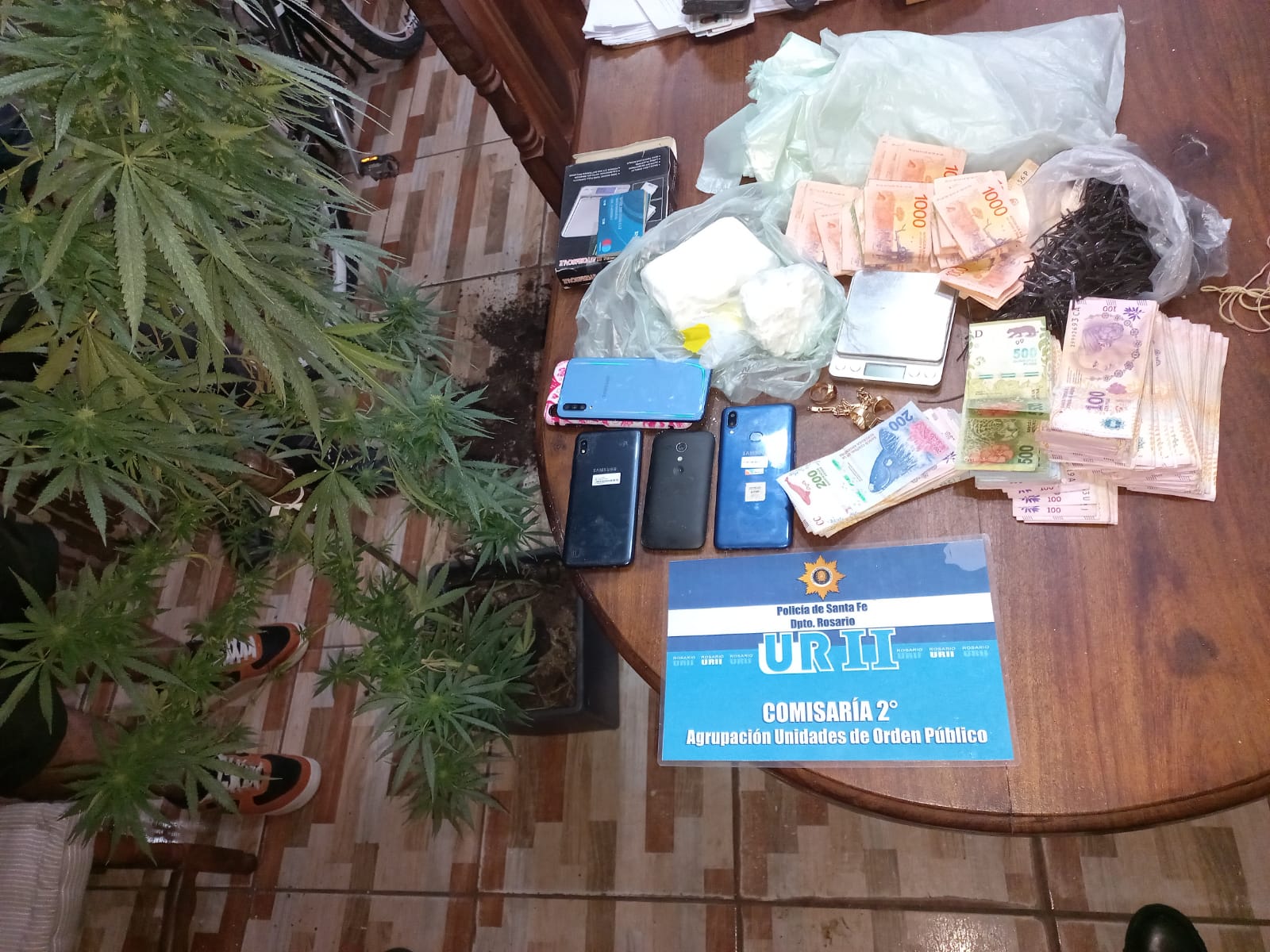 Este miércoles, la Policía allanó el domicilio de Medici 4620. En el lugar secuestraron tres teléfonos celulares (bloqueados por ser robados), herramientas y dos bicicletas. Además, en una habitación hallaron cocaína, una balanza de medición y más de 150 mil pesos. Y en la terraza se observó una maseta con una planta de marihuana.