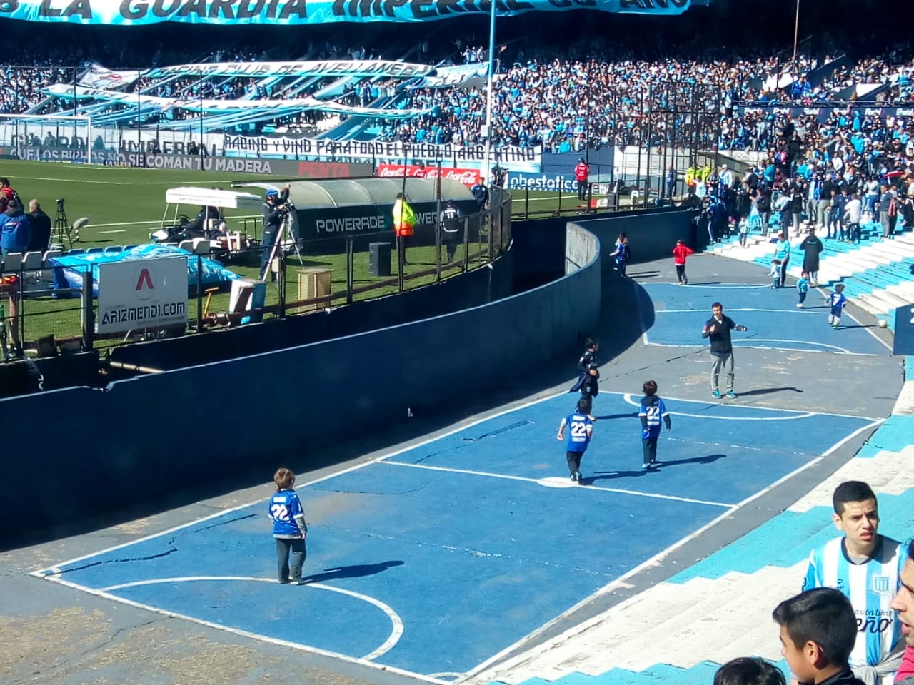Mientras se disputaba el encuentro entre Racing y Rosario Central, un grupo de niños se entretuvo jugando al fútbol sobre una cancha reducida que se encuentra en la parte inferior de la platea del Cilindro.