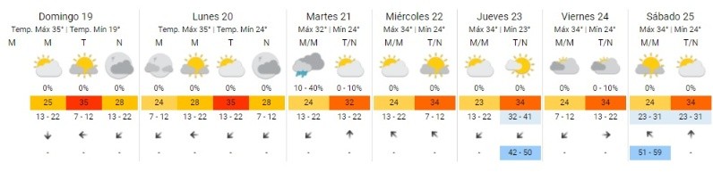 El lunes seguirá caluroso con mínima de 24 grados y máxima otra vez de 35. El martes por la mañana podrían registrarse algunas lluvias aisladas que traerían alivio con viento fresco; pero los 32 grados de ese día volverá a repuntar con el correr de la semana.