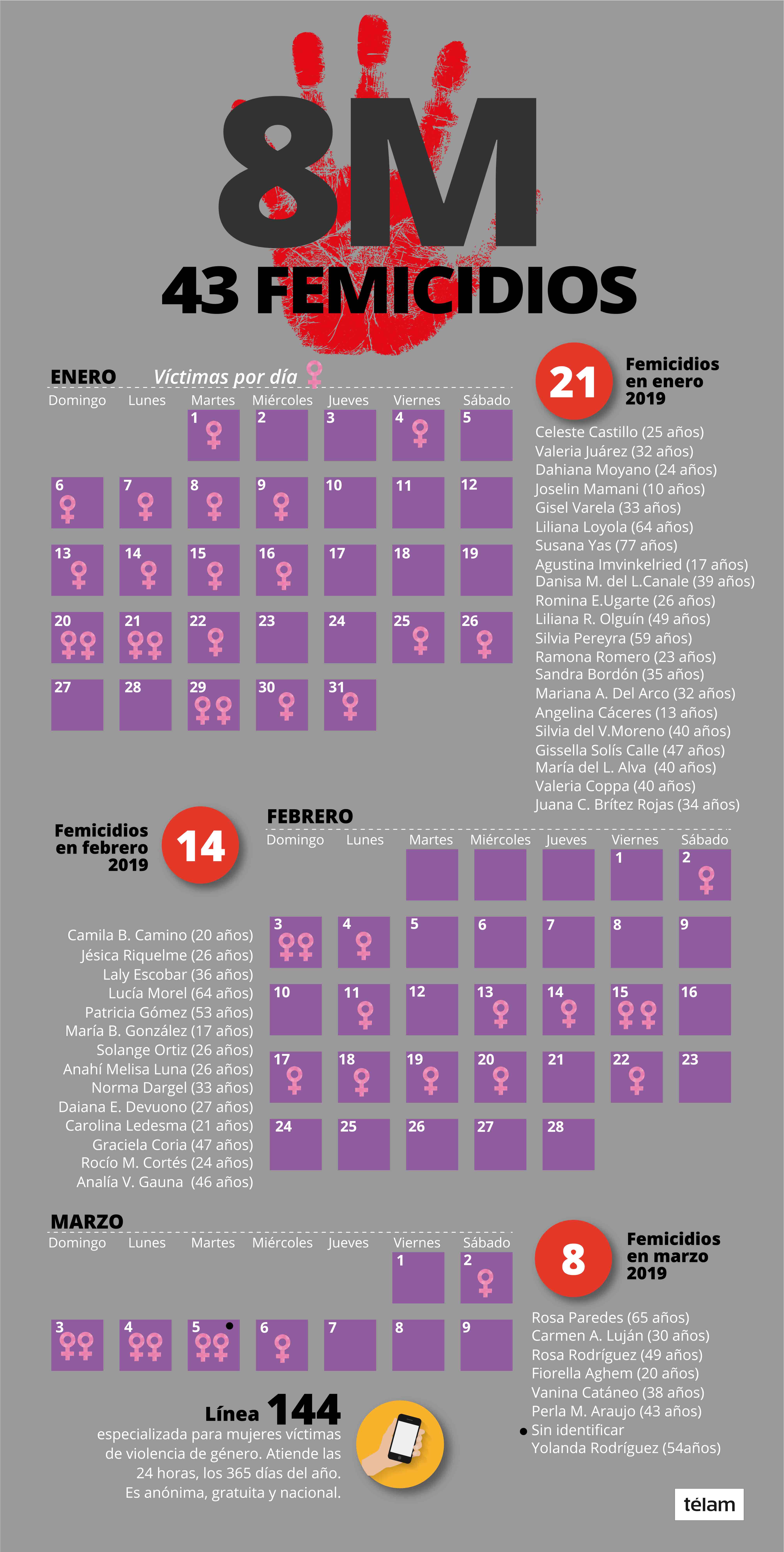 Con estos tres casos, ya son 42 los femicidios reportados en lo que va de 2019 en distintos puntos del país y el séptimo cometido durante este fin de semana largo de Carnaval.