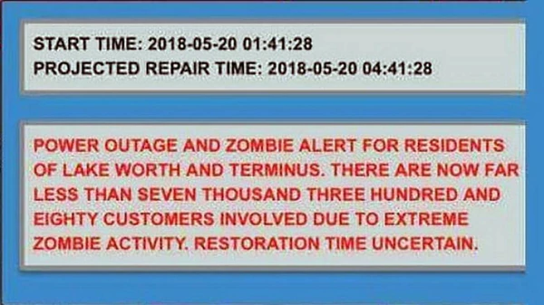 «Hay al menos 7.380 clientes afectados por la extrema actividad de zombies«. Así decía la alerta enviada por las autoridades a los residentes de Lake Worth (Florida), durante un reporte oficial por apagón.