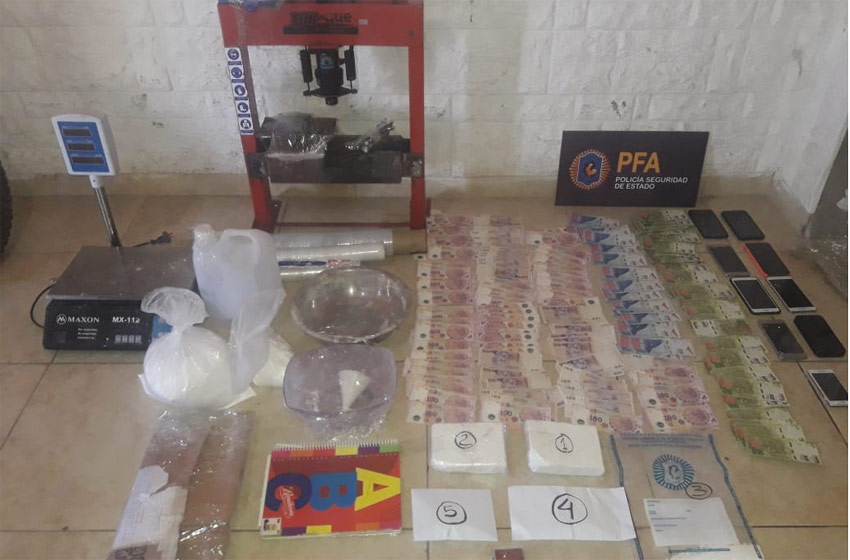 Como resultado se detuvo a 4 hombres y 2 mujeres que integraban una organización narcocriminal que producía, acopiaba y distribuía estupefacientes en distintos puntos de la provincia. Además, se incautaron 33 kilogramos de una sustancia polvorienta de color blanco, cuyo test arrojó un positivo no determinante para cocaína por lo que el Juzgado ordenó una pericia de laboratorio para confirmar el resultado, dos trozos rectangulares de cocaína por un peso de 1,278 kilos; 13 plantas de marihuana y 24 gramos de la sustancia, 15 litros de precursores químicos, 5 balanzas, prensas hidráulicas y elementos de corte y fraccionamiento.