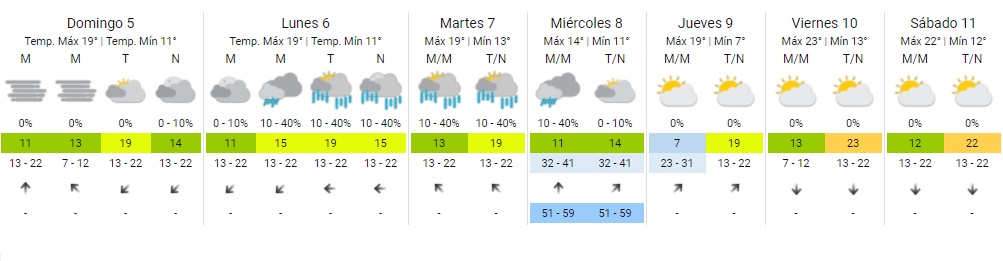 A partir del jueves, no habrá más chaparrones y comenzará un ascenso de los registros térmicos por encima de los 20 grados, con cielo algo nublado o mayormente despejado.