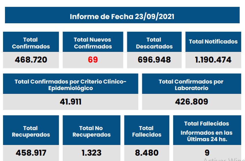 El Ministerio de Salud de Santa Fe informó este jueves 23 de septiembre que se registraron 69 casos de coronavirus en el territorio provincial, de los cuales 32 corresponden a la ciudad de Rosario.