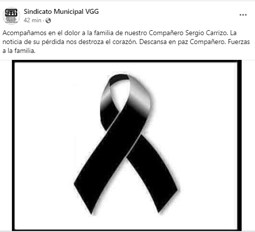El Sindicato de Municipales de Villa Gobernador Gálvez, al cual pertenecía Carrizo, hizo eco de la información este martes por la mañana y compartió una publicación alusiva en redes sociales. «Acompañamos en el dolor a la familia de nuestro compañero Sergio Carrizo. La noticia de su pérdida nos destroza el corazón. Descansa en paz», expresaron.