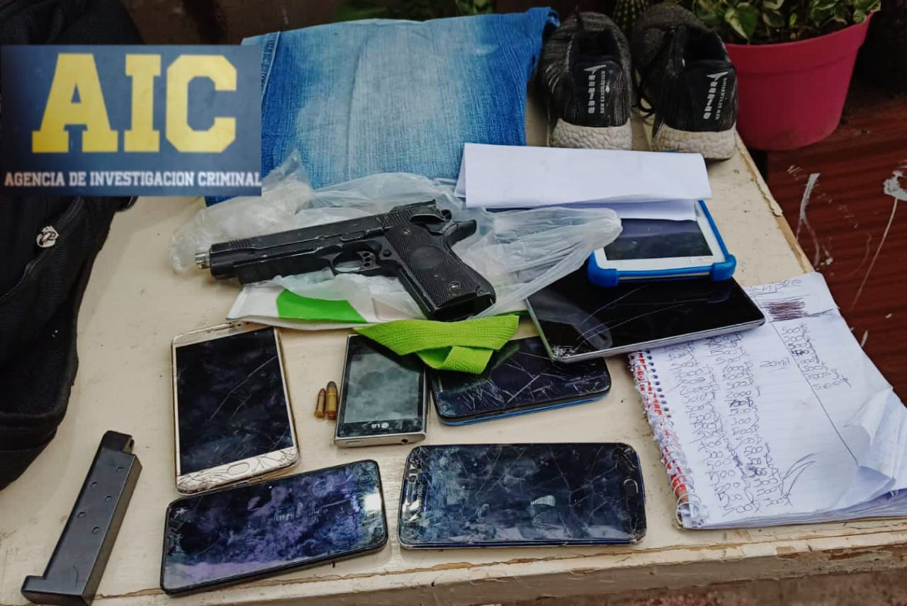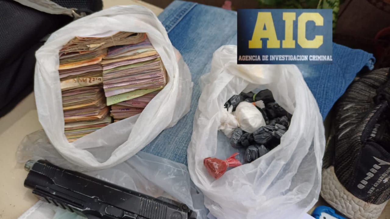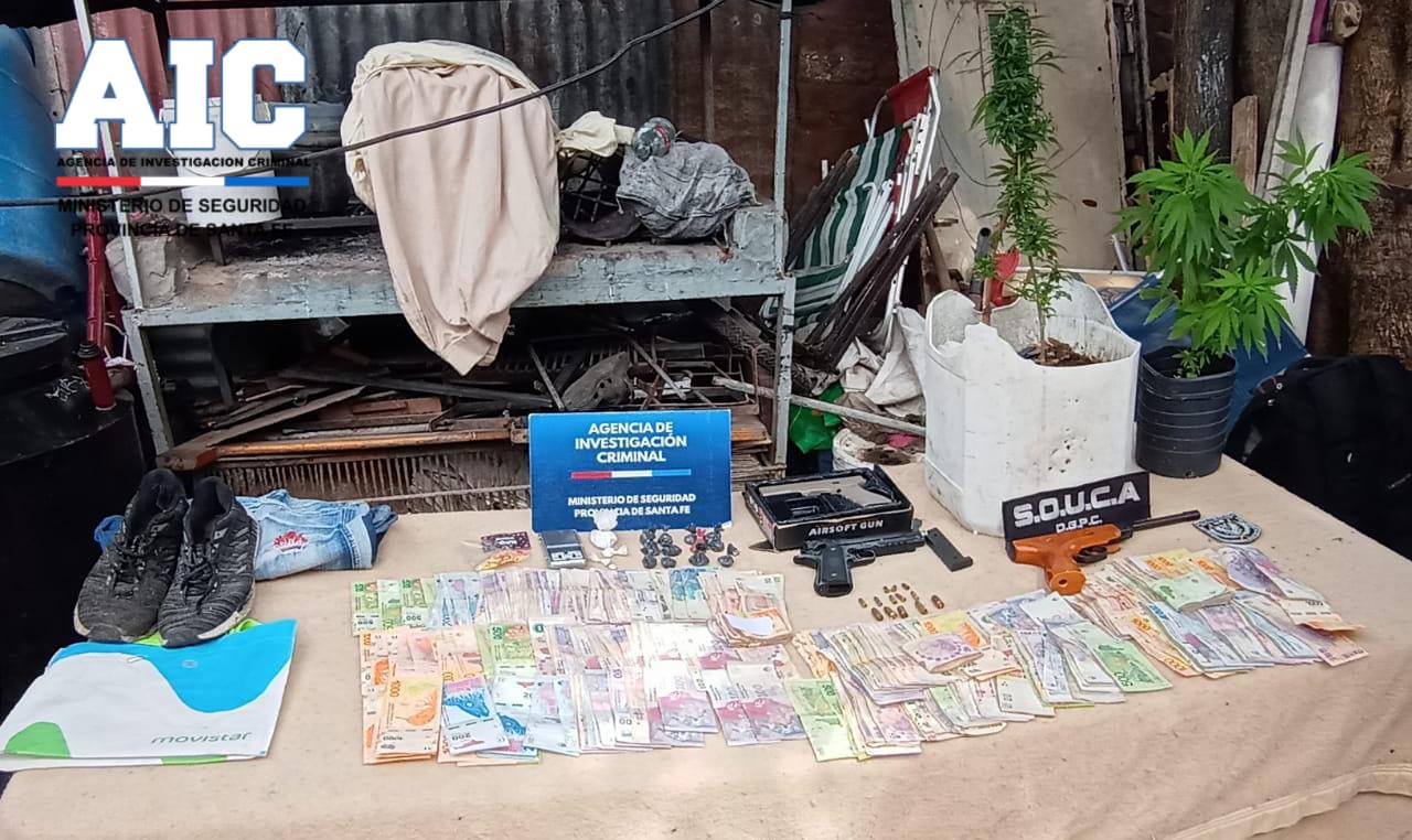 Por otro lado, los efectivos de la AIC secuestraron una pistola de aire comprimido calibre 5.5 mm, una réplica de pistola 9 mm con cargador, una pistola de airsoft, prendas de vestir similares a las utilizadas por el autor del hecho según registros fílmicos, una bolsa ecológica similar a la que utilizó el autor para retirarse con las pertenencias robadas, cinco cartuchos calibre 22 largo, tres cartuchos calibre 22 corto, dos cartuchos calibre 9×19, un cartucho calibre 32, un cartucho calibre 40, una vaina servida calibre 9×19, 12 bolsas con marihuana, cuatro bolsas de cocaína, dos plantas de marihuana, anotaciones de venta de los estupefacientes, una balanza de precisión y $105.090.