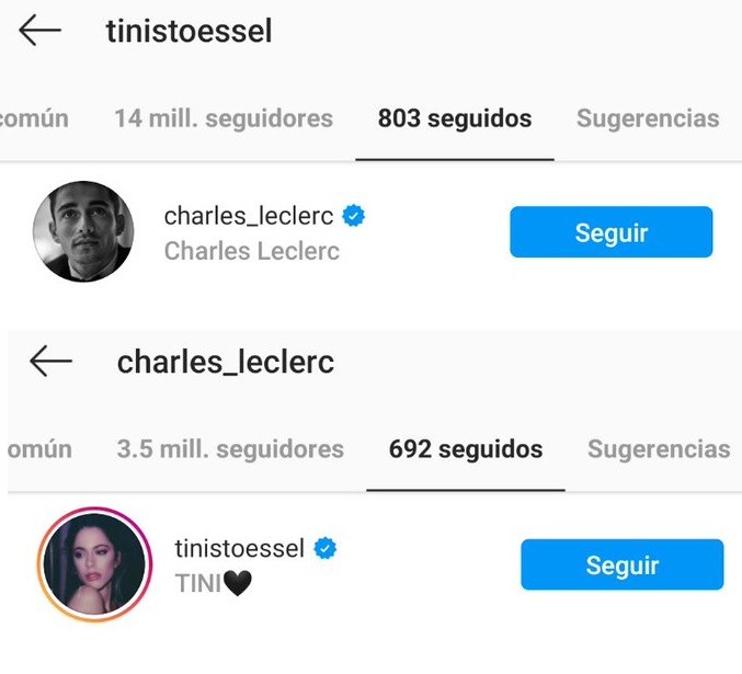 Se trata de Charles Leclerc, uno de los competidores máximo que tiene la máxima categoría delautomovilismo. A su vez, el monegazco también comenzó pulsó el botón «seguir» para conocer más en profundidad a cantante.