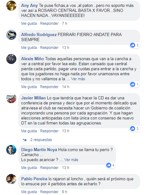 «Lo que tendría que hacer la CD es dar una conferencia de prensa y decir que por el momento delicado que atraviesa el club se necesita hacer un Gobierno de coalición incorporando una persona por cada agrupación», propuso un hincha en Facebook. «Renuncien carloni y sus títeres. Están insultando a nuestro club», escribió otro con más enfado.