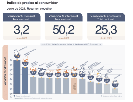 De esta forma, en lo que va del año el acumulado es del 25,3%, mientras que la suba alcanzó 50,2% en los últimos 12 meses. El mes pasado, el crecimiento de los precios se desaceleró, después del pico máximo de este año, que fue de 4,8% en marzo.