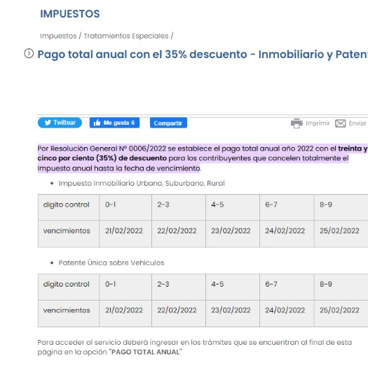 «Por Resolución General Nº 0006/2022 se establece el pago total anual año 2022 con el treinta y cinco por ciento (35%) de descuento para los contribuyentes que cancelen totalmente el Impuesto anual hasta la fecha de vencimiento», reza el comunicado difundido en la página santafe.gov.ar.