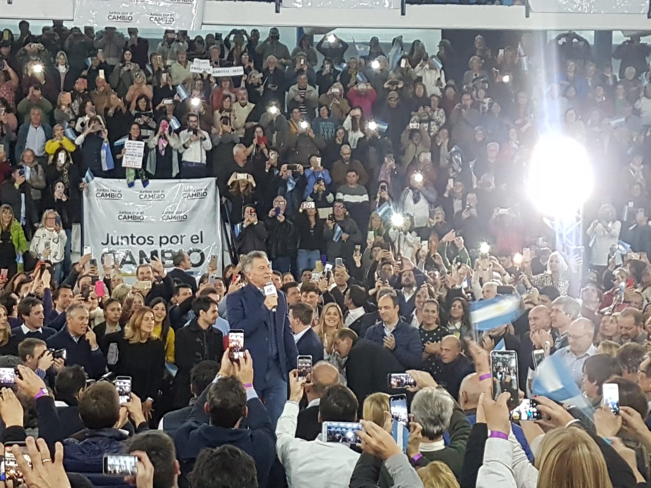 Gran cantidad de manifestantes, militantes y dirigentes de Juntos por el Cambio coparon en la tarde de este lunes las instalaciones del Club Banco Nación, en bulevar Rondeau al 2900, para presenciar el acto que encabezó el presidente Mauricio Macri, en el cierre de campaña en la provincia de cara a las primarias abiertas, simultáneas y obligatorias (Paso) que se celebrarán el próximo domingo 11. Casi dos horas antes, el estadio cubierto ya estaba completo (tiene capacidad para unas 3.500 personas) y de a poco se fue armando el clima de festejo, con cantos de la gente y una banda de trompetas y percusión.