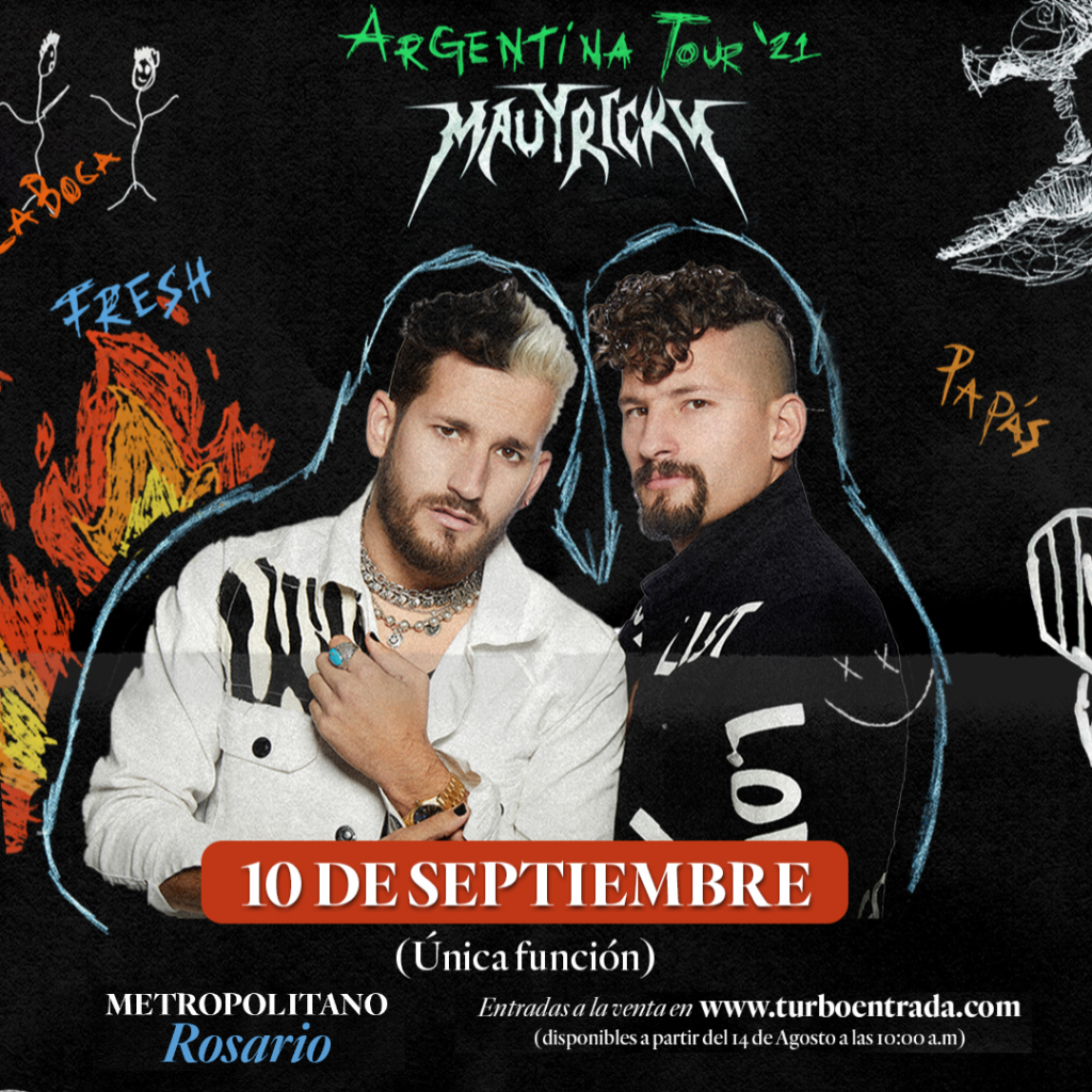 El próximo viernes 10 de septiembre, desde las 21, en el Salón Metropolitano de Rosario se presentarán Mau y Ricky en una única función luego de agotar dos Teatro Gran Rex y un show en el Quality Estadio de Córdoba.
