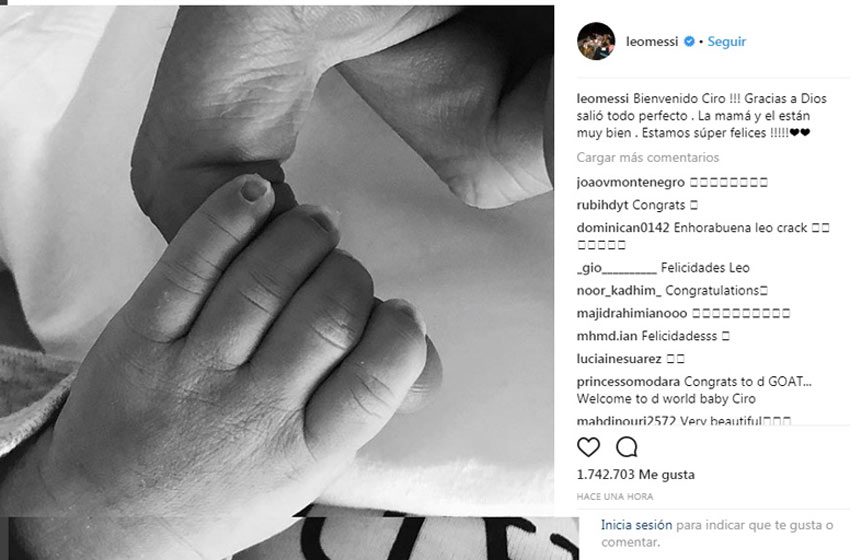 El nacimiento de Ciro se adelantó a las previsiones ya que era aguardado para los primeros días de abril próximo, según lo habían anunciado Lionel y Antonella en octubre pasado.
