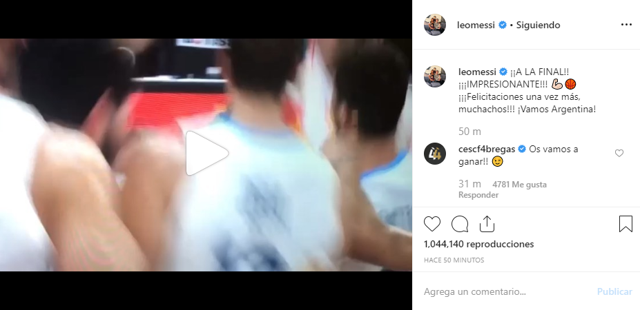 Uno de los que no ocultó su alegría por la gran victoria fue el rosarino Lionel Messi, capitán del equipo de fútbol, que en su cuenta de Instagram realizó una publicación con un breve video del festejo de los jugadores cuando terminó el partido correspondiente a la semifinal.
