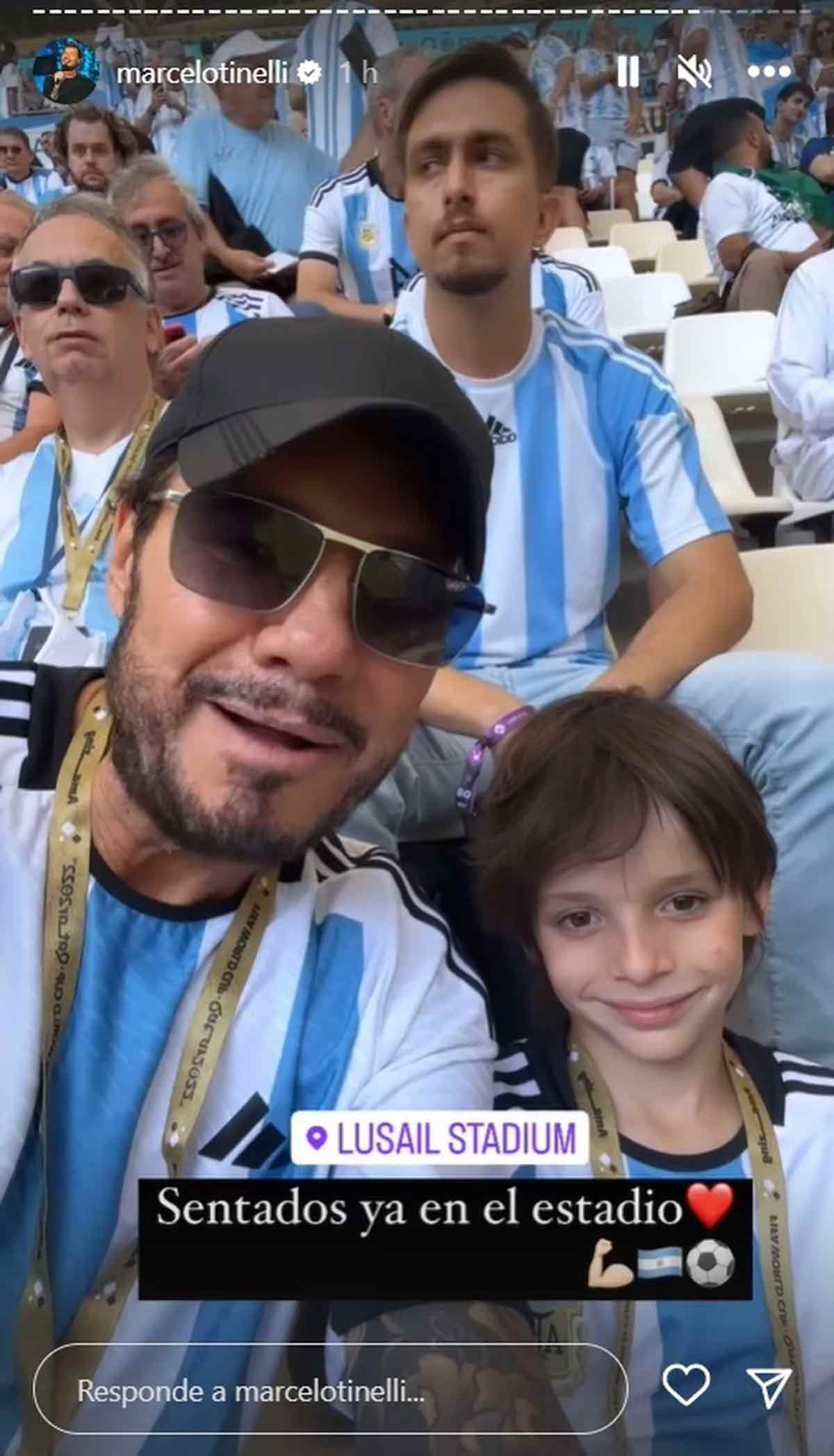 El conductor Marcelo Tinelli con su hijo Lolo y el tenista Diego Schwartzman, entre otros, también estuvieron en el estadio.