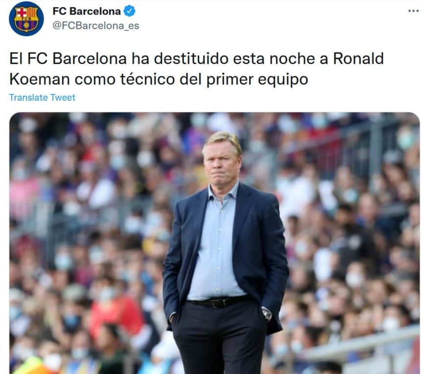 «El FC Barcelona ha destituido esta noche a Ronald Koeman como técnico del primer equipo. El presidente del club, Joan Laporta, se lo ha comunicado tras la derrota ante el Rayo Vallecano. Ronald Koeman se despedirá este jueves de la plantilla en la Ciudad Deportiva.