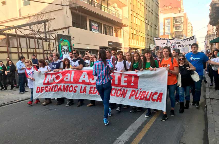 La convocatoria fue en plaza Montenegro, donde hubo una jornada de clases públicas. Y desde allí partieron las diferentes columnas de estudiantes y docentes con rumbo al Monumento a la Bandera, donde cerraron la jornada con un acto masivo y bandas musicales.