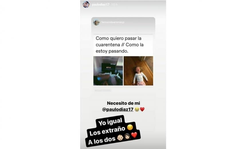 Es que su esposa Fernanda y su hijo Agustín, de cinco meses, están en Santiago de Chile. «Necesito de mi Paulo», escribió la pareja del zaguero en su historia de Instagram y él respondió: «Yo igual. Los extraño a los dos».