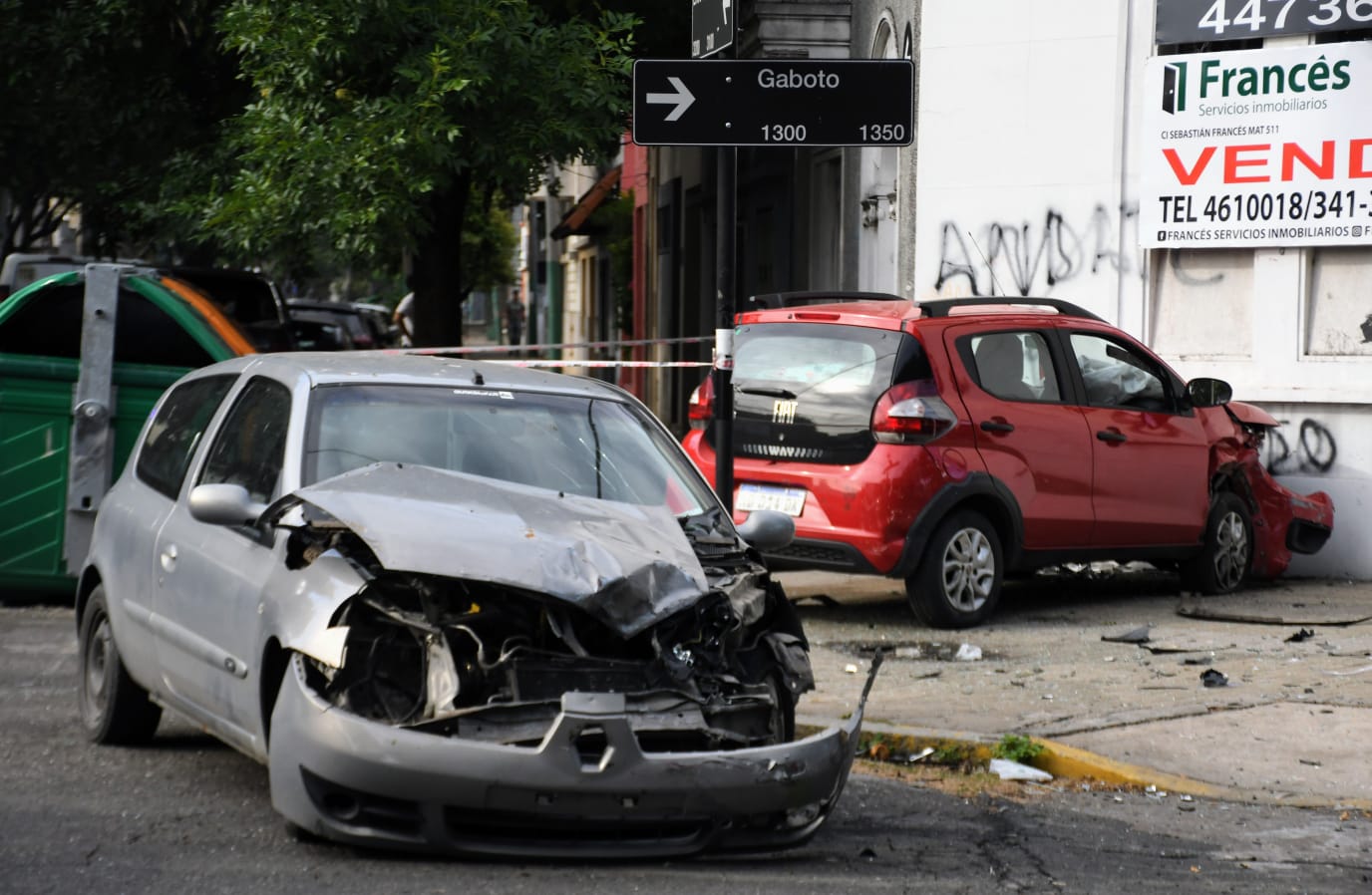 El Fiat, debido a la violencia del choque, terminó incrustándose contra la ochava. El Clio, en tanto, giró sobre su eje y quedó a contramano.