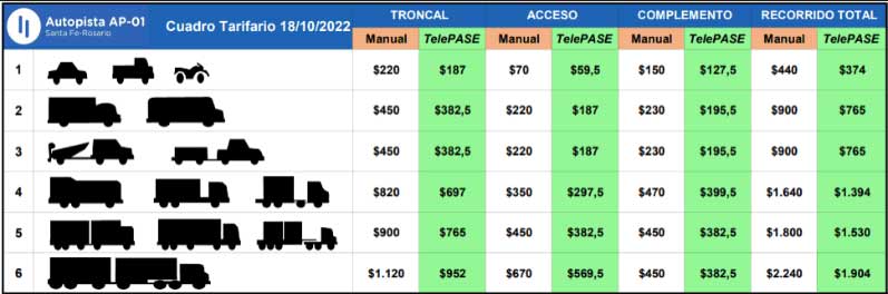 De esta manera, circular por la traza vial que conecta Rosario con la capital provincial costará $220. A eso se le aplica un descuento del 15 por ciento a quienes utilizan el sistema de Telepeaje.