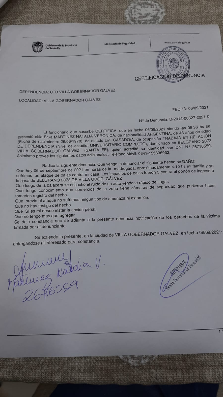 Violencia en Villa Gobernador Gálvez: balearon la casa de una concejala del Frente de Todos